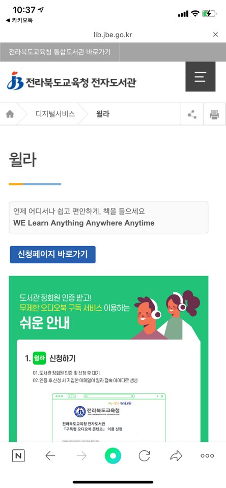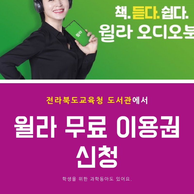 정확히 무슨 영문인지 몰라도 전라북도교육청에서 윌라 오디오북을 무료로 들을 수 있게 하는 서비스를 제공하고 있습니다.
