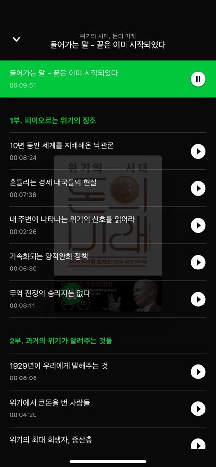 책 목차를 선택하면 해당 부분부터 들을 수 있습니다.